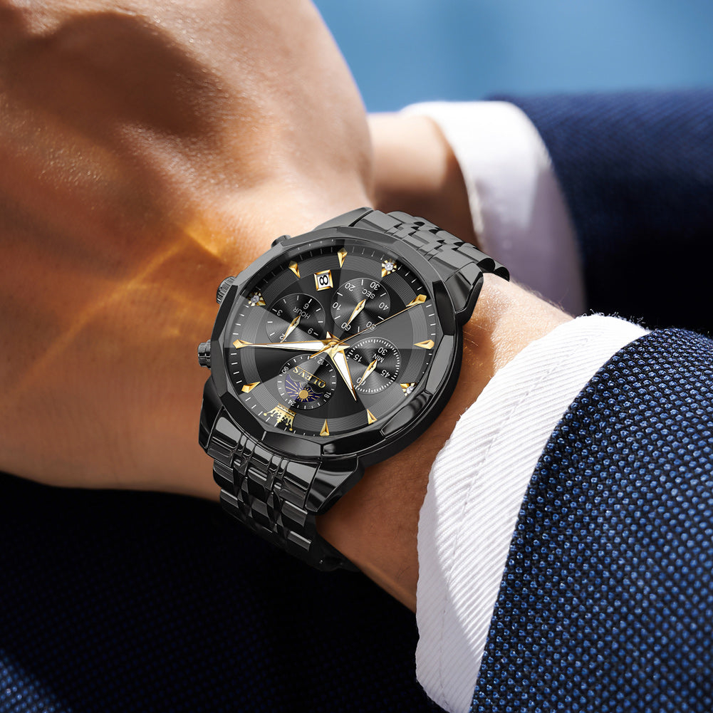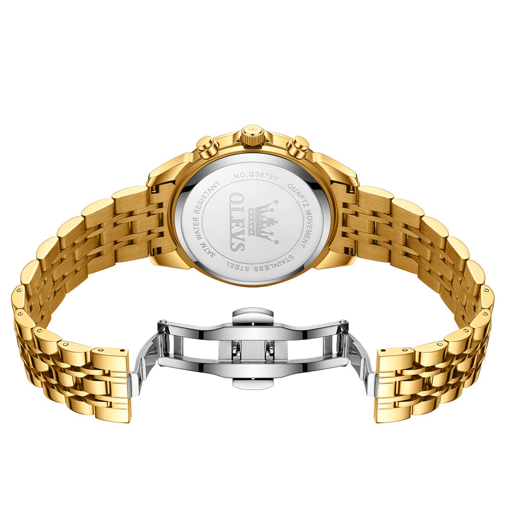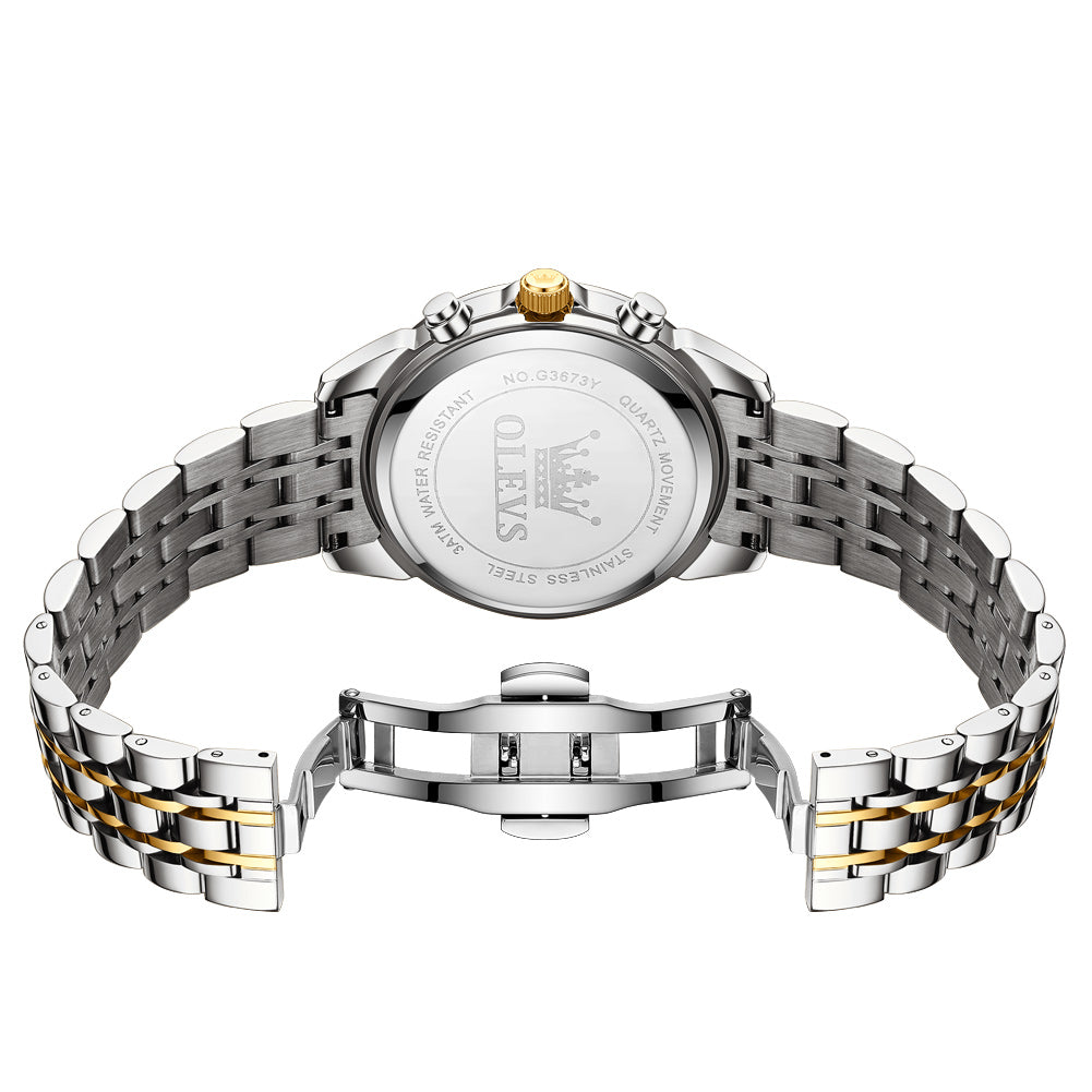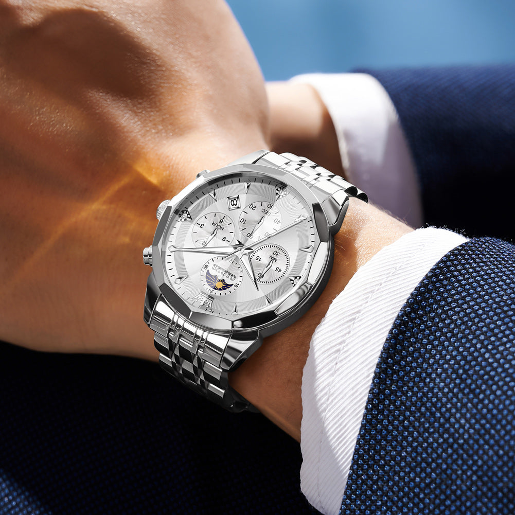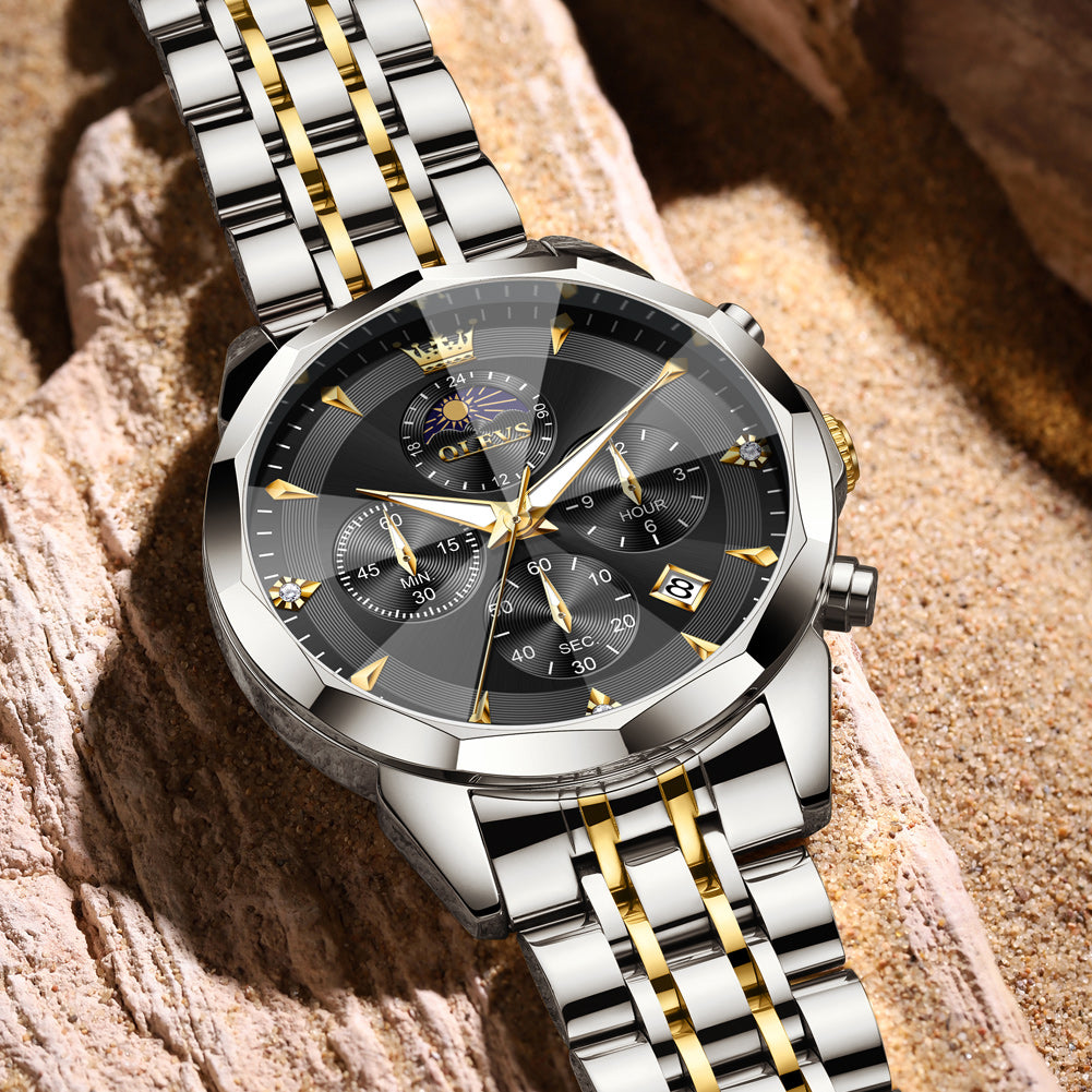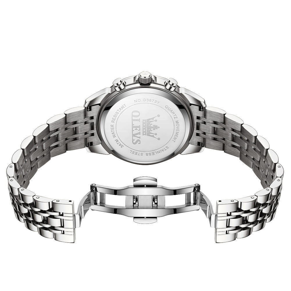 OLEVS 3673 Watches For Men Business Dress Luxury Casual Chronograph Multifunction Analog Quartz Stainless Steel Waterproof Luminous Moon Phase Date Men Wrist Watches Reloj Para Hombre