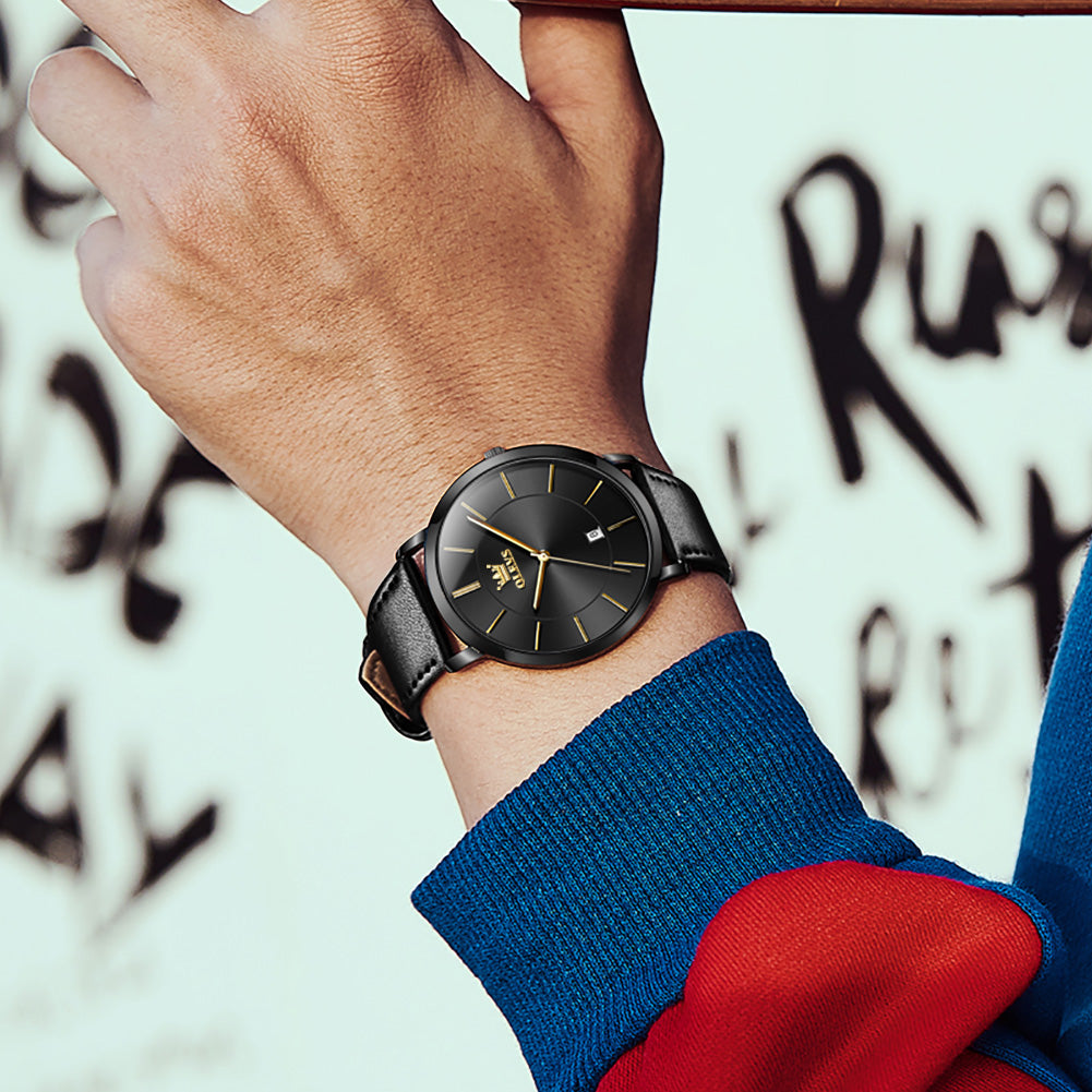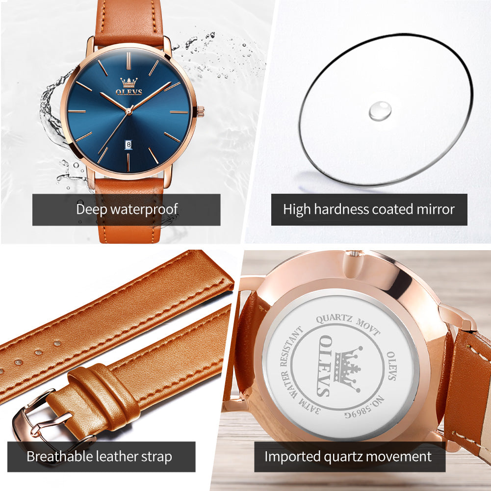 OLEVS  5869 Watches for Men Minimalist Ultra Thin Fashion Casual Analog Quartz Date Watch Waterproof Slim Simple Big Face Dress Mens Wrist Watches with Retro Leather Band for Men Reloj para Hombre